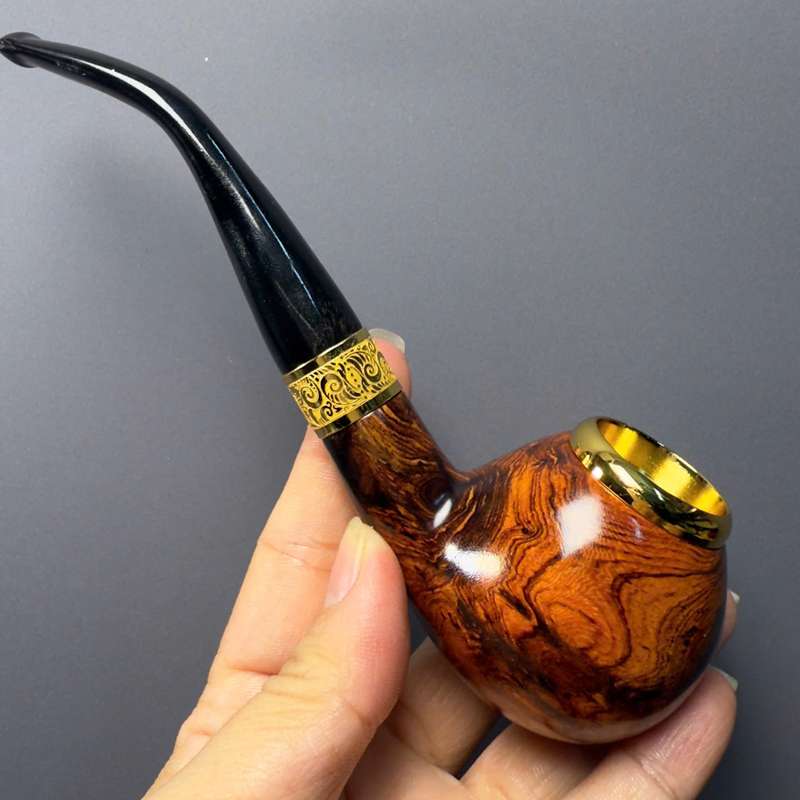 Tẩu cigar gỗ cẩm cán sừng bát đồng mạ vàng free size TS32